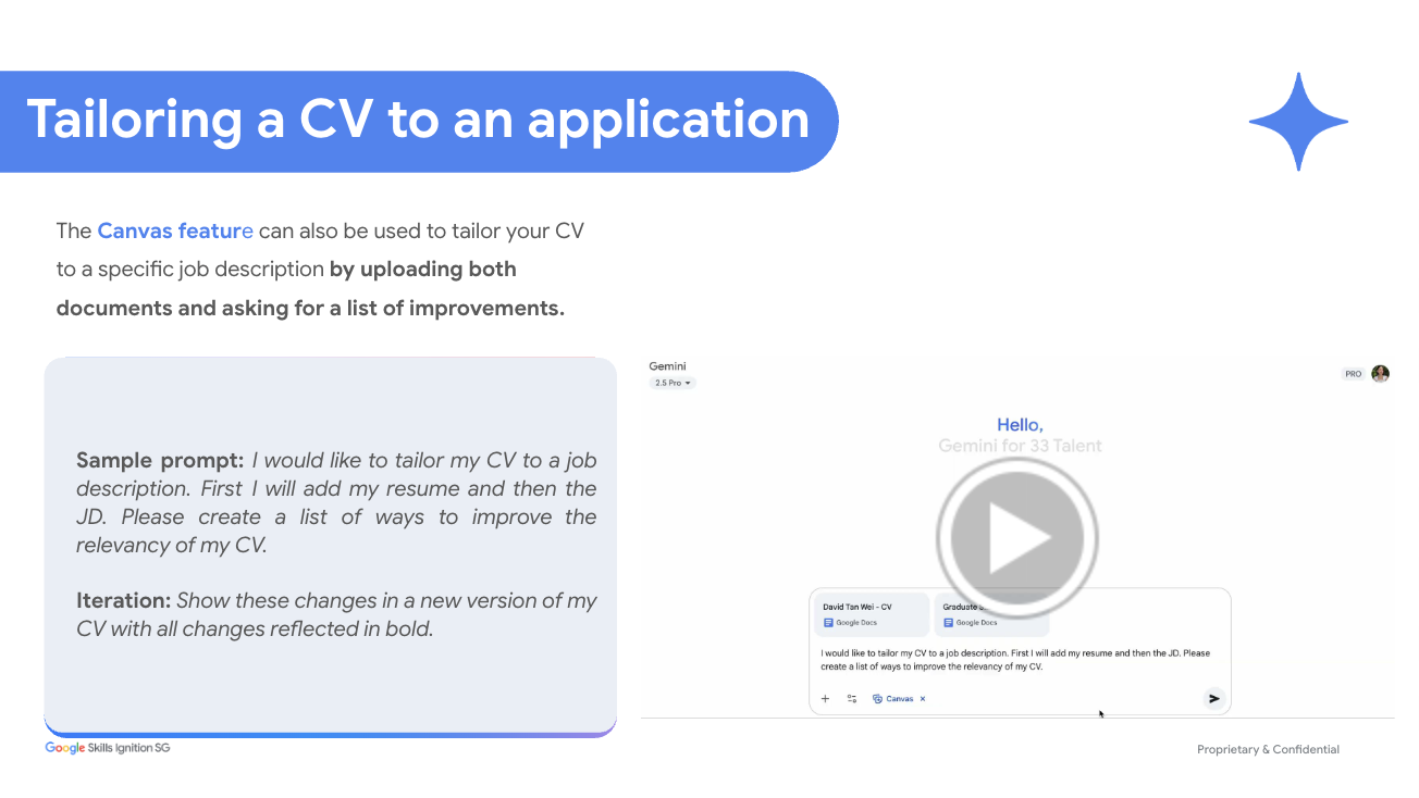 Click to watch the demo on how to ask for suggestions on improving your CV: