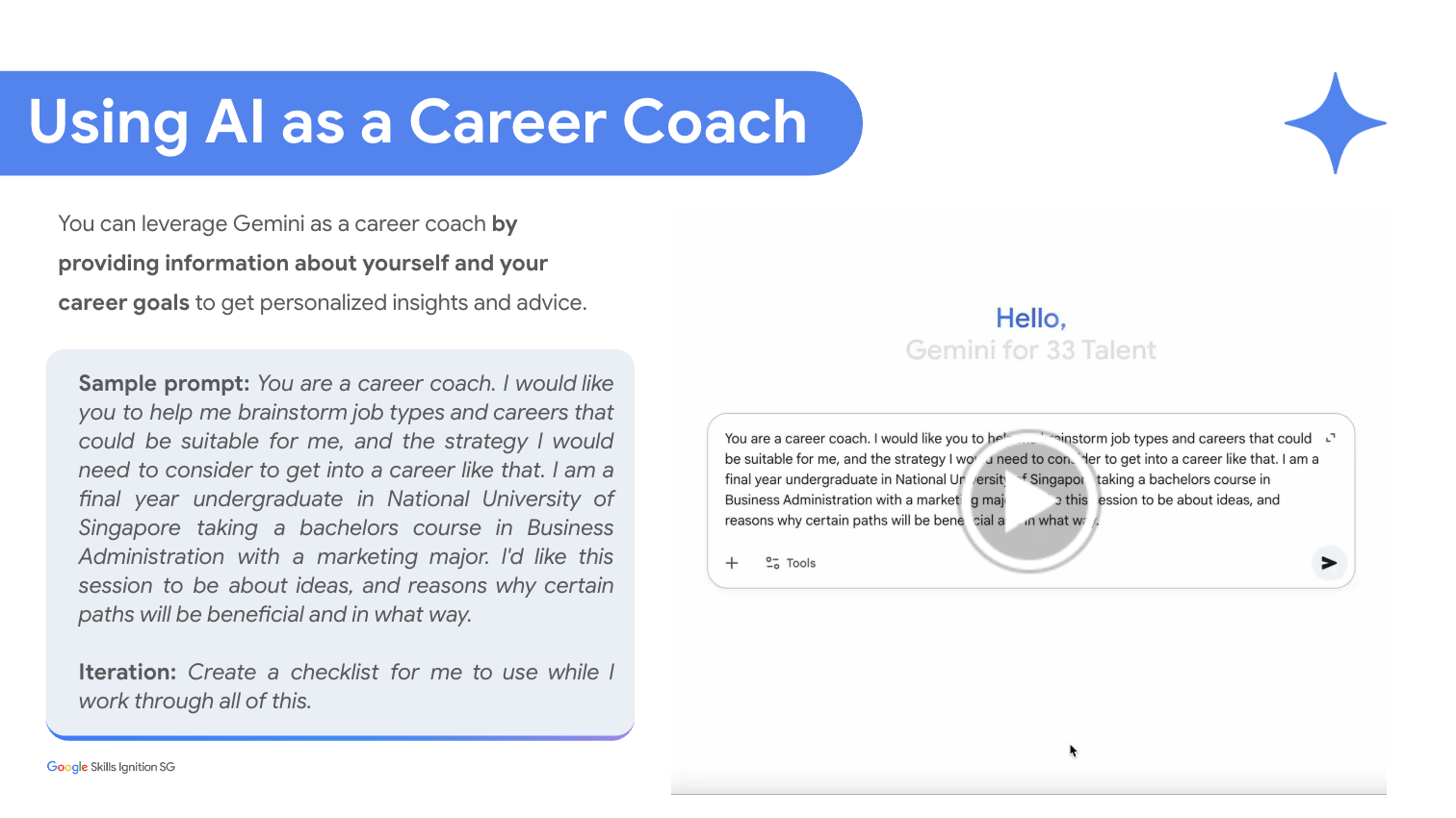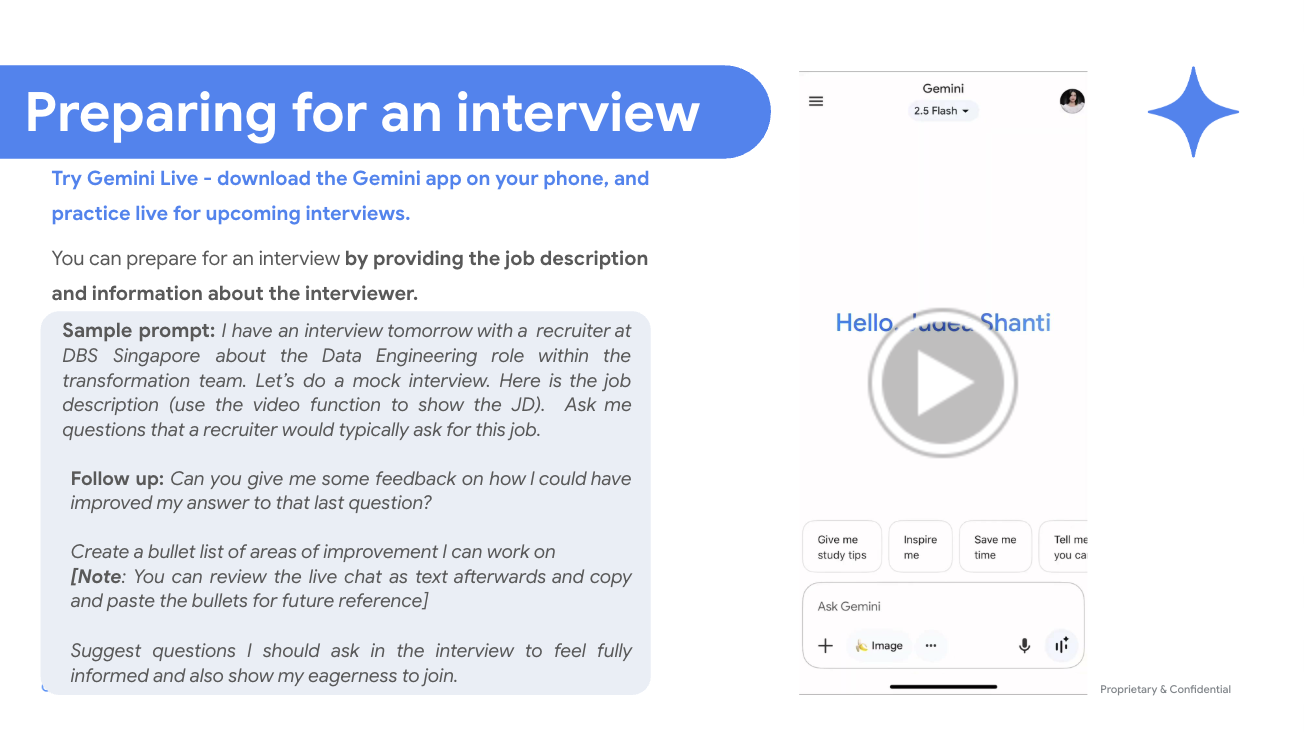 This blog focuses on the strategic advantages of using AI to boost your job search. The following sections explain the value of treating AI as a strategic partner to gain a competitive edge in today's recruitment landscape. You can access and make a copy of the "AI Tool Demo: How to leverage AI to boost your job search" deck here to see the specific commands and visual walkthroughs used for these strategies.